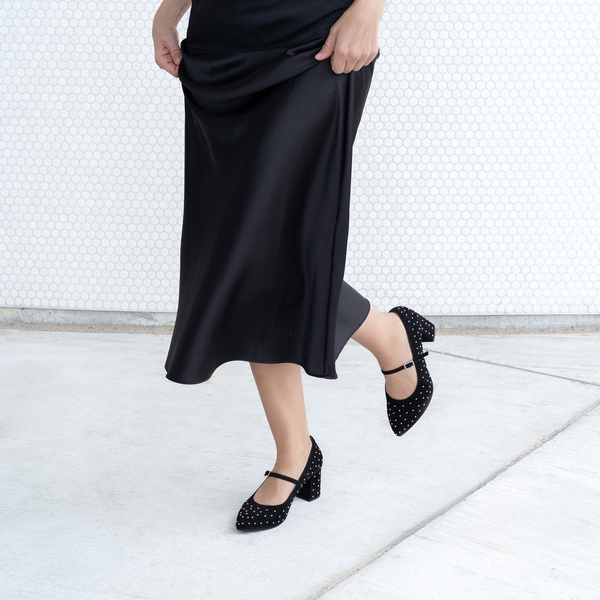 Fra blokkhæler i semsket skinn og glitter til sandaler i semsket skinn og lær. Alle Lili styles er bygget på samme lest og har derfor akkurat samme komfortable passform.